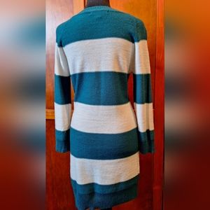MADE FOR ME TO LOOK AMAZING dark teal and white sweater dress. There is a silver thread running through the white to add a little sparkle. Size M.