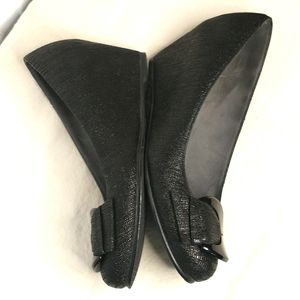 Final price drop. Stuart Weitzman EUC SZ 7 black leather (suede lined) wedges.