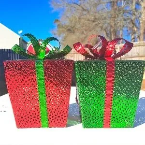 Beautiful Red And Green Decor Holiday Gift Metal Boxes With White Lights Inside And Bows On Top. Be sure to view all photos as they are a part of the description. Please be thoughtful and not send low offers. Remember that all sales are final and enjoy your tour as you shop ๐ my closet!