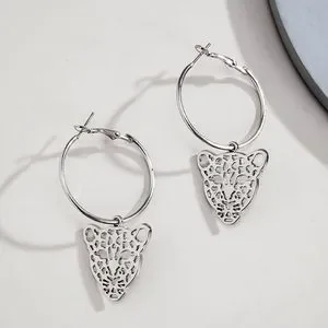 Any 3/$25! Silver Hoops w/Laser Cut Tiger Pendant Earrings
