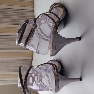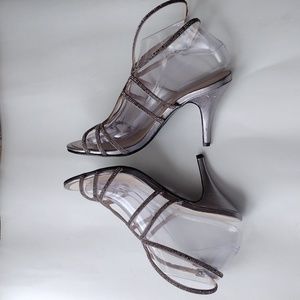Caparros Michaela crystal embellished pewter heel sandals 8.5