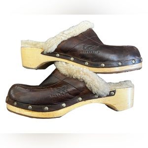 Ugg Australia Kalie Womens Brown Leather Sheepskin Clogs Sz US 9 S/N 5425