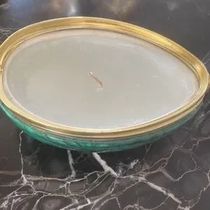 Lightly scented candle has never been lit. Bottom of removable lid and bottom of candle exhibit shelf ware. Otherwise good condition