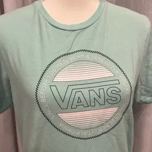 Vans T-Shirt Boys Short Sleeve Mint Green Skateboarding Casual Lightweight