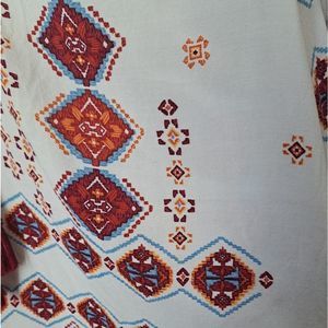 ANTHROPOLOGIE Fig and Flower Peasent Tunic Tie Top Blouse