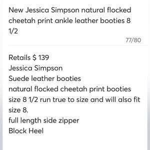 New Jessica Simpson, suede leather cheetah print ankle booties, 8 1/2