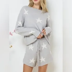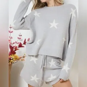 NEW! Fabulous Soft Long Sleeve Star Print Top and Short 2pc Set