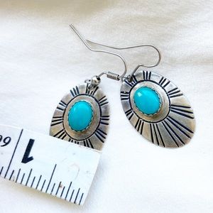 Thomas Singer Navajo Sterling Silver Turquoise Earrings Sunburst Oval