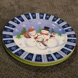5 melamine Christmas themed plates- each measures 11 inches in diameter.