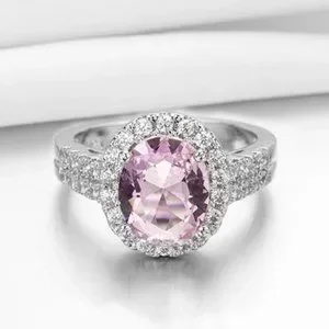 925 Sterling Silver Luxury Pink Crystal Shiny Rhinestone Ring Jewelry En…