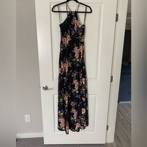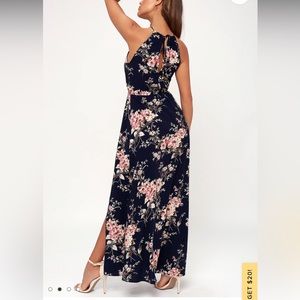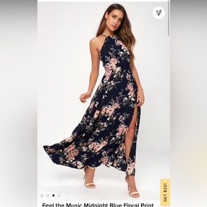 Lulu’s Feel the Music Midnight Blue Floral Print Maxi Dress Size Small NWOT
