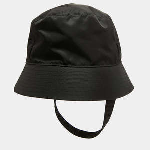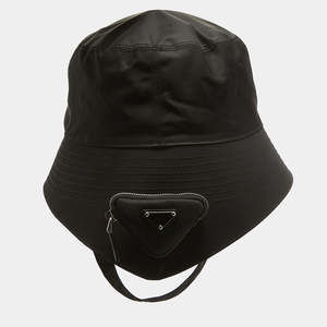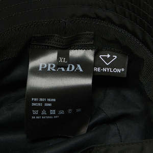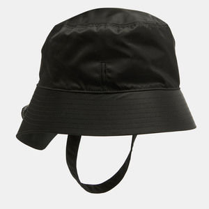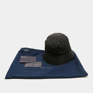 Prada Black Re-Nylon Triangle Logo Detail String Bucket Hat XL