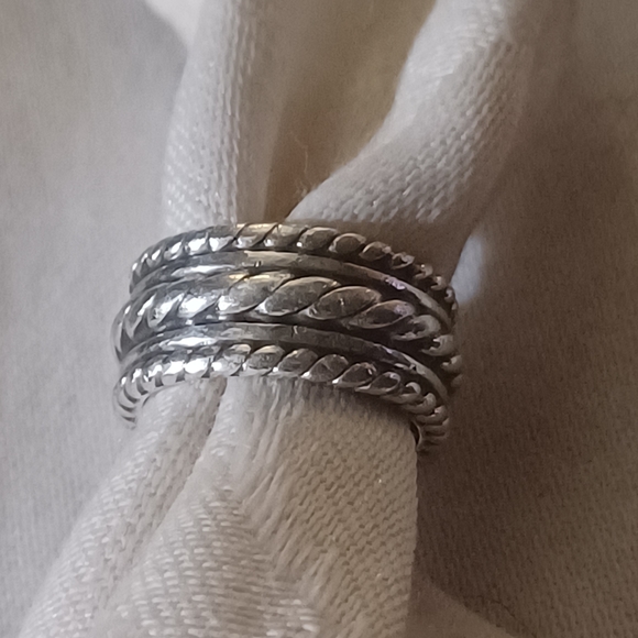 Gorgeous Reve Oval Peridot Ring was handmade in Phoenix, Arizona. A faceted oval peridot is bezel set in 14k Yellow Gold with 14k beads on either side. The rope design band is 1/4 inch thick in Sterling Silver. This ring is a size 6. This is a really nice and bold piece. The ring is stamped inside Reve, Sterling, and 14k. This piece is in very good pre-owned condition with light scratching on the back.