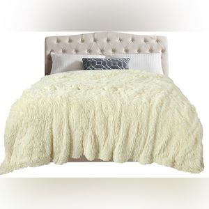 Brand new unopened super fuzzy blanket in “Bartlett Pear” color- soft yellow/cream color. 78x90” queen size. Factory sealed