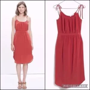 Madewell 100% Berry Silk Tie Shoulder Camisole Dress w/Pockets