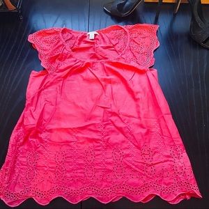 Banana Republic peasant style top with scalloped hemline and arm openings. With embroidery and eyelet details throughout.