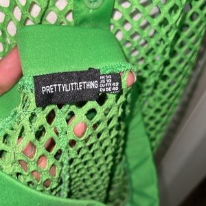 PRETTYLITTLETHING Green Net Oversized Short Sleeve /Trousers Beach Set of 2 in good used condition no damage size “10”