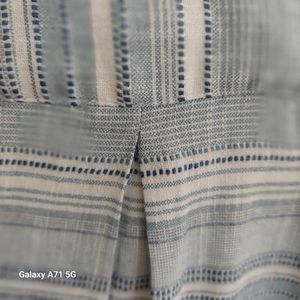 Lightweight woven fabric in ivory and light blues.