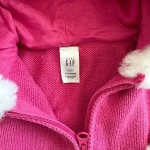 Like NEW Baby GAP Bright Pink Fur Trim Full Zip Sweater Sz 3-6 mon