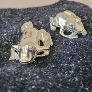Silver-Toned Vintage Pewter Billy-Joe Stamped Frog Salt and Pepper Shakers