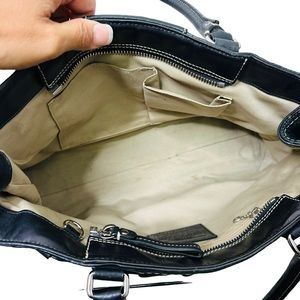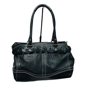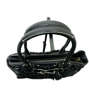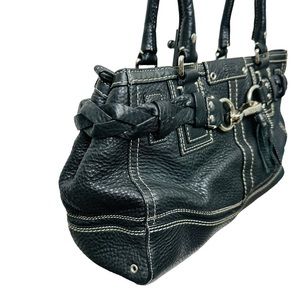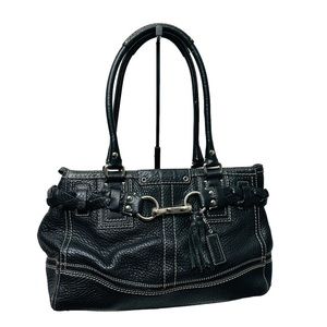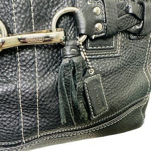 COACH Hampton F13084 Braided Trim Tassle Black Pebble Leather Handbag