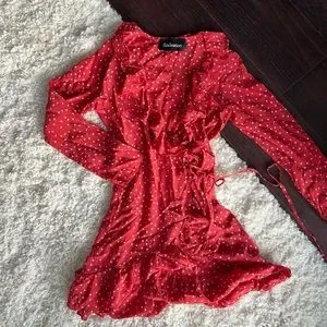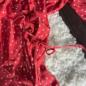 Realisation Par Alexandra Red Star Print 100% Silk Wrap Dress