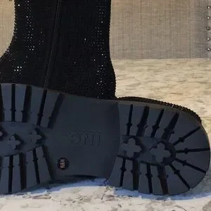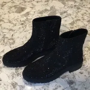 Black rhinestone booties. 1-4/5 block heel. Round-toe boots with side zipper closure. Brand new.