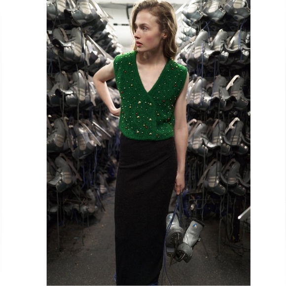 New with tag ZARA PEARL TRIM KNIT VEST.