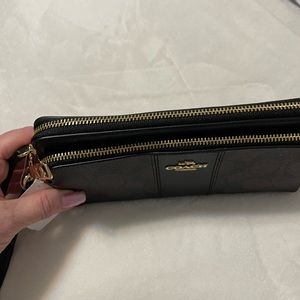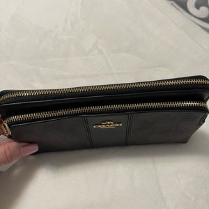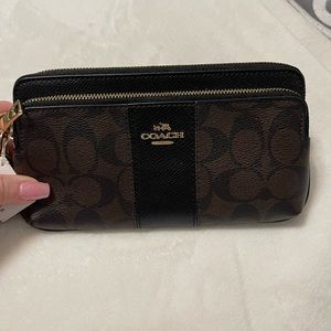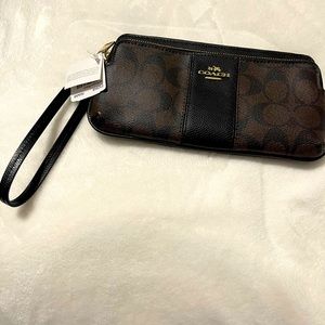 NWT black and brown dual zipped Coach wallet with wristlet