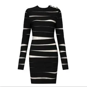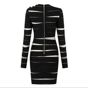 πNew Captivating Long Sleeve Sheer Mesh Design Round Neck Slim Fit Dress