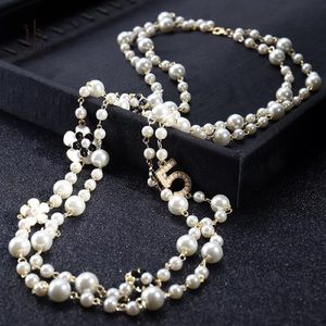 New Pearl Camellia Number5 Flower Double Long Necklace