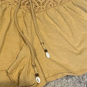 Shells hang from the tie! These are the best lightweight breezy shorts! Wear as a cover up on vacation or wear lounging around the house or during errands! I am in love with these! Have in every color!