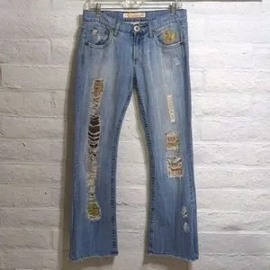 True vintage late 90's-early 2000s Z- Cavaricci jeans size 7. Boot cut, low rise, cute patches, total hippie vibes. ✌️🕊️