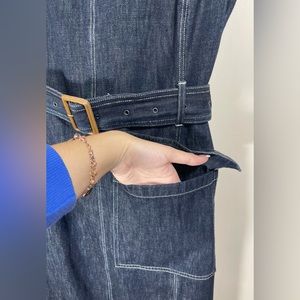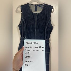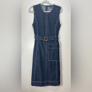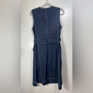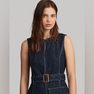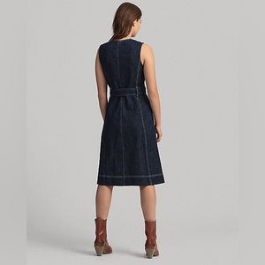 Polo Ralph Lauren Denim Fit and Flare Knee Length Dress in Dark Indigo Women’s Size 12. 100% Cotton. Machine washable. Sold out on official website. “Sleeveless fit-and-flare silhouette. Rounded neckline. Concealed centre back zip with a hook-and-eye closure. Front buttoned keyhole closure. Left hip flapped pocket and side pockets. Belt loops. Comes with a buckled self-belt. Imported.”