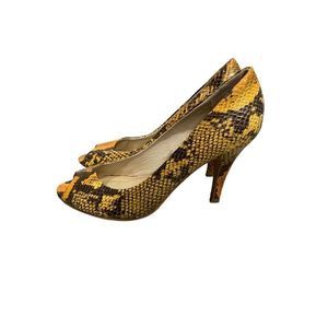 Chinese Laundry count down stiletto pumps with faux snake pattern. Signs of wear along the bottom of shoes and soles but otherwise in great condition. Heel height about 3.25”