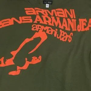 AJ ARMANI JEANS Green Orange/Red'ish Logo Print Long Sleeve Shirt