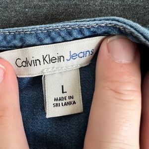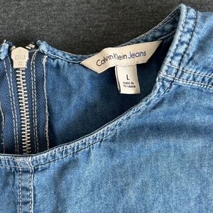 Calvin Klein Jeans Short Sleeve Chambray Zip Mini Dress Size Large