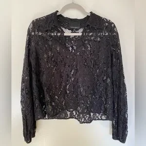 Cynthia Rowley Black Lace Long Sleeve Top Size 4