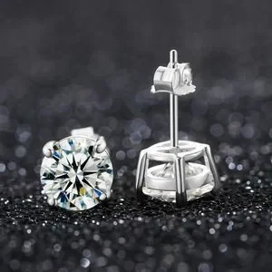 Certified 4.0ctw VVS Moissanite Diamond Solid 925 Sterling Silver Stud Earrings