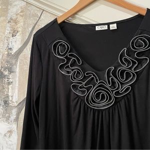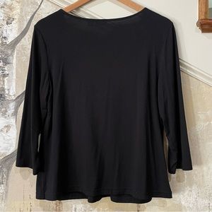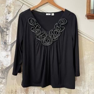 V-neck blouse with 3/4 sleeves and embellished neckline