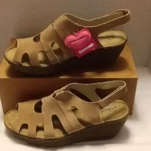 Women's, size 11 Suede Skechers Sandals. Comfort, wedge heel sandals with Memory Foam.