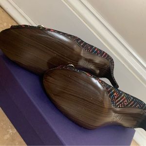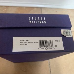 Brand new !!Absolutely gorgeous Gorgeous Stuart Weitzman Multicolor Patterned Heels .wooden soles !!! Chic heels with vibrant multicolor pattern. Features peep-toe design and elegant bow detail.size 6.5 comes with original box