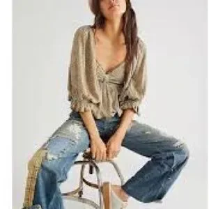 🆕 Free People Brittnee Printed Top in the color Tropical Nut. Features lace trim, cinching, smocking, slightly cropped fit. Beautiful dainty floral print. New with tags, size small.
