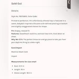 Printed to perfection, this effortlessly ethereal top is featured in a sweet, babydoll-inspired silhouette with defined pleating at bottom and slightly exaggerated sleeves for shape.