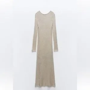 ZARA METALLIC THREAD KNIT MAXI DRESS