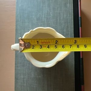 Darling little vintage porcelain ceramic creamer white / off white with a floral design in the front. Textured throughout. Stamp on bottom.