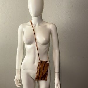 Free People *Downtown* tan brown tie dye leather lanyard crossbody bag purse sac