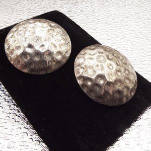 MEXICO TAXCO STERLING DIMPLED LARGE GOLFBALL ROUND CLIP EARRINGS 18