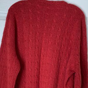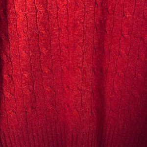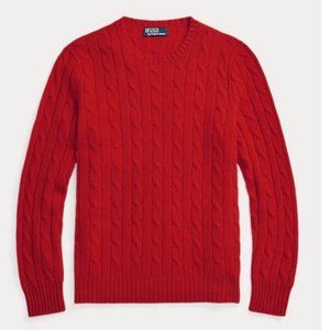 Sweater style inspired by fishermen's ropes, the cable-knit sweater has been a Ralph Lauren hallmark for half a century. This is pure Italian cashmere giving the dimensional pattern a luxuriously soft hand, while hand-linked seams ensure a precise fit with unsurpassed comfort. Equally at home as a man’s sweater or a female sweater. I call the color more Nantucket Red rather than a bright red. I believe Polo calls it Martin Red? This is your opportunity to own luxury at a fraction of the original sweater as show in the stock photos. This is a wardrobe staple that will be worn for many years.