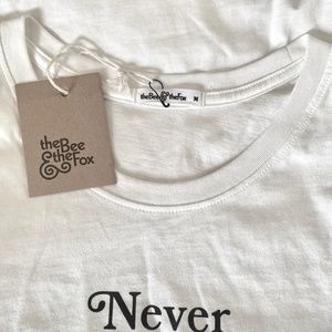 Fun white tee-shirt. Excellent condition. 100% cotton in medium. Short sleeves. Made by The Bee and the Fox from Peru. Cotton is super soft and nice weight. Great to wear with leggings. Bright white, no stains, discolorations or wear.